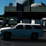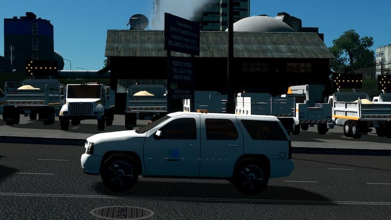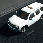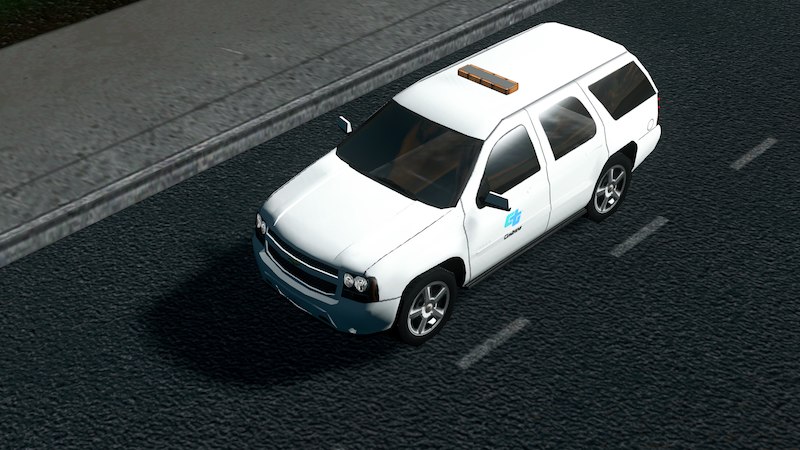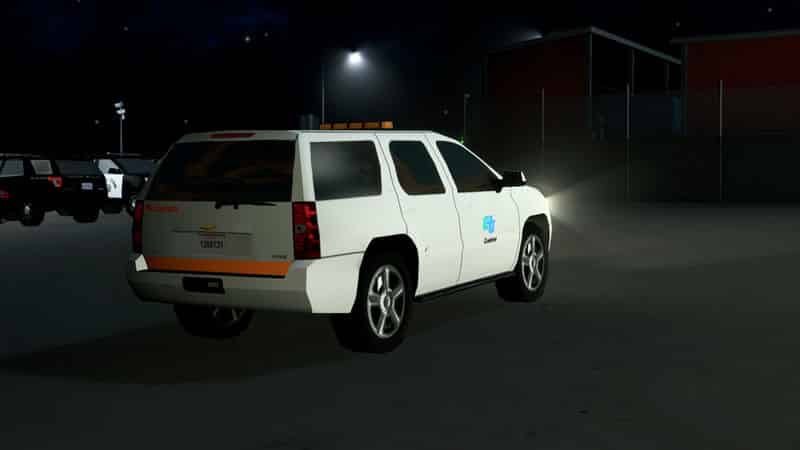 This Surveyor SUV is decked out in the older CalTrans livery, which contains only the logo on the side, without an orange stripe. In real life, these 2010 Tahoes are all in that older livery.