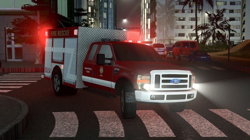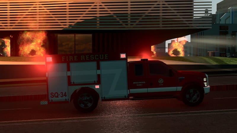 Derived from outstanding gamer’s F350 Hero Truck Remapped entirely to allow for higher definition side textures, changed illumination, transferred textures from my generic fire livery (aka the ladder)
