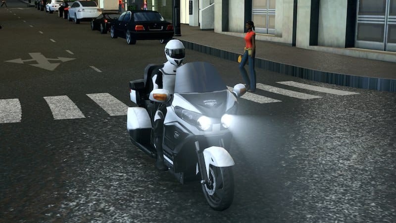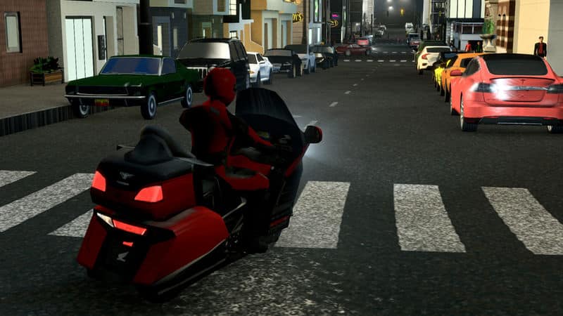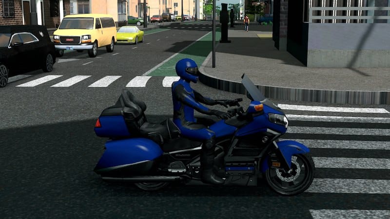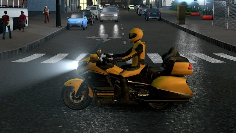 The statistics are the same as the default sedan. I did not use the scooter because this vehicle has two headlights, as a result, the night light positioning would be off. Furthermore, scooters do not retain their mesh when parked, but sedans do so…this would mean that even when parked, this motorcycle will retain its rider. Use Advanced Vehicle Options to change it to fit your needs.