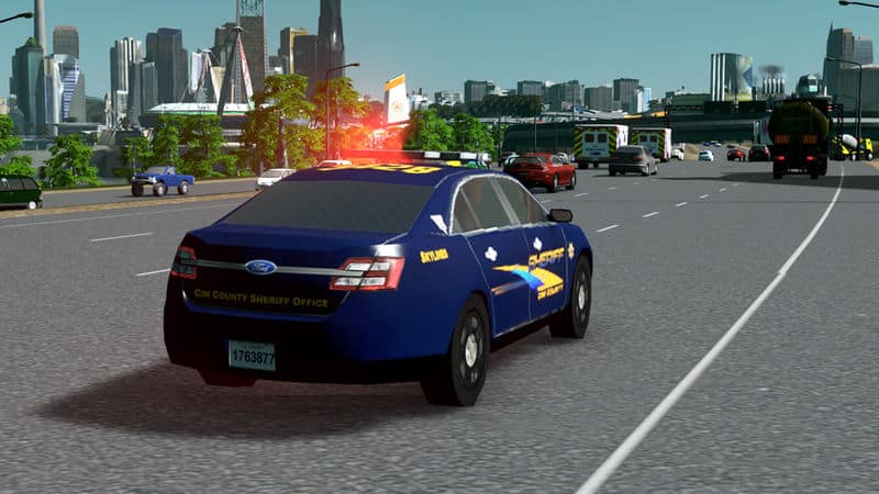Pursue the suspects with your V6 powered Interceptor sedan. Capable of patrolling both the highways and the city, it lends a much needed hand to the Cim County Sheriff Department.