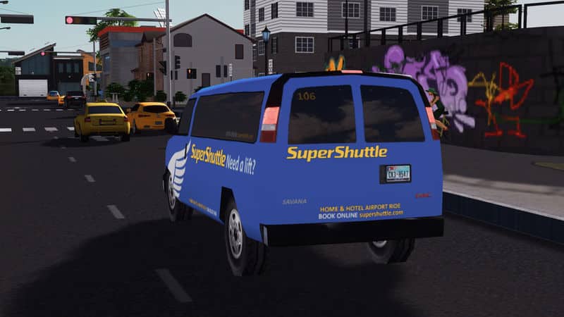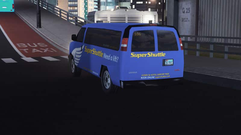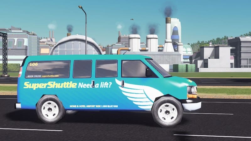 Supershuttle is a national chain of shuttles that drives people to and from the airport. Internationally, they partner with other organizations to deliver their service. Using the GMC Savana, they shuttle your Cims to the airport and back.