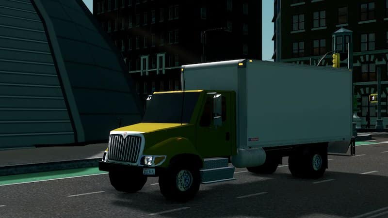 Cab derived from International Pumper Tanker. Box truck frame derived in part from Sketchup File[3dwarehouse.sketchup.com], but heavily edited, optimized, and customized. Portions of the hydraulic lift drawn manually by hand. Recompiled into obj, scale 1040, textured with the help of morgan stock photos, illuminated, and converted for Skylines. Most of the tris comes from the rear handles.
