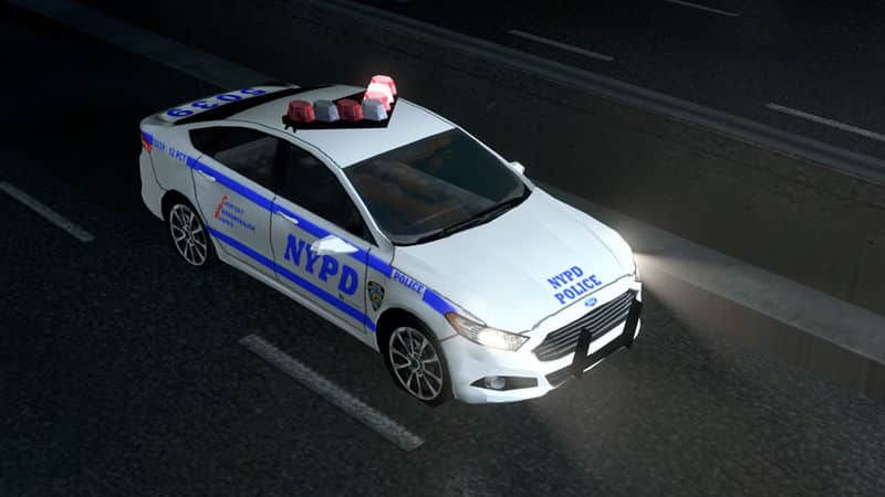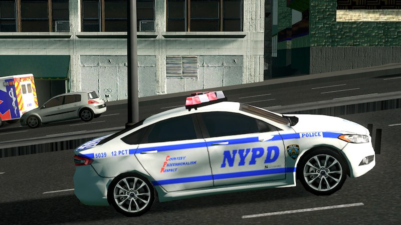 Cut up extremely high poly Ford Fusion Model From GTA SA, deleted interior, performed automatic optimization, cut out windows, cut out doors, rebuild the chassis and the outer panels, before ultimately conducting another round of manual optimization combined with intensive smoothing. Certain area of the model isn’t exactly smooth and due to the lack of a transparent glass, the front lights look slightly misshapen when viewed directly from the front. Added standard NYPD segments onto vehicle.