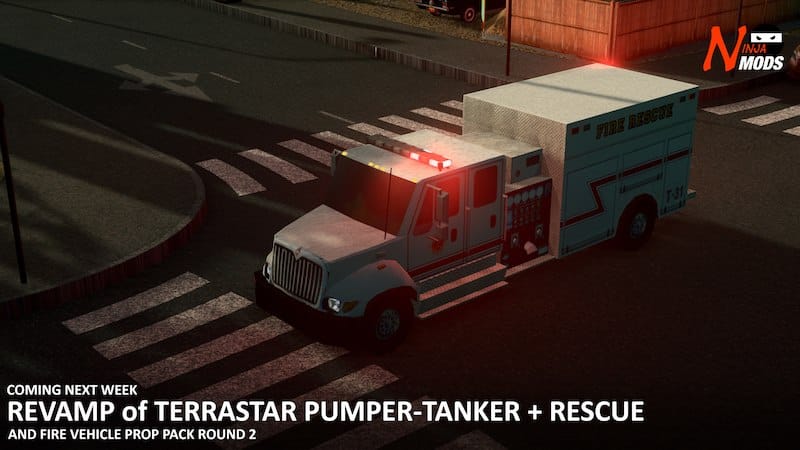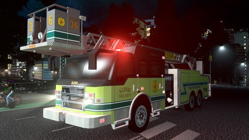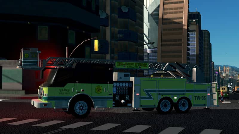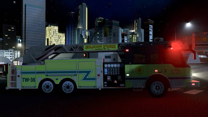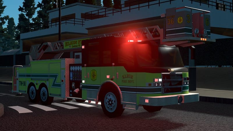 Klein Fire Department’s newest tower replaces their older ladder setup. Capable of directing water towards the flames in addition to rescuing trapped Cims, it is the perfect addition to your city’s firefighting fleet.