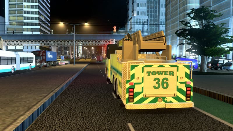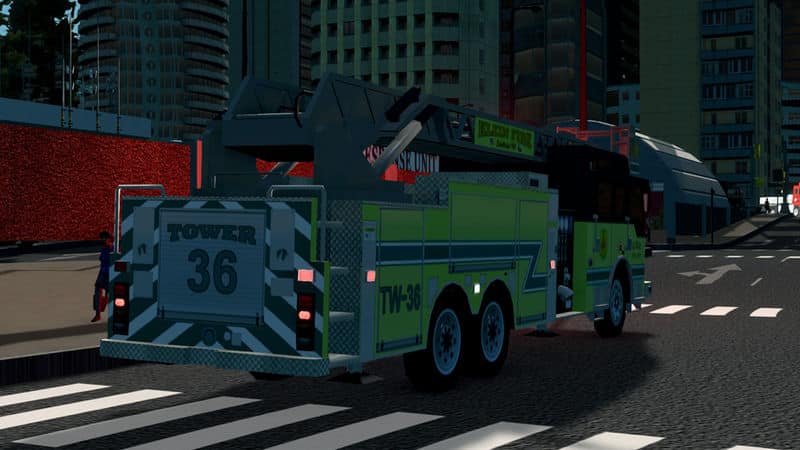 Model developed by Hoppah, edited by Fire Dept. Boston[www.emergency-planet.com]. rear engine portion derived from Hoppah’s Aerial Tower, combined with a pump that was crafted from scratch. Remapped, textured, and converted to Cities Skylines by me.
