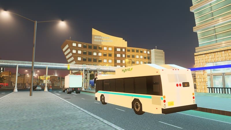 Original Model[3dwarehouse.sketchup.com] Reduced polys, made the front part more round to actually fit with the Gillig BRT Template, Copied hybrid portion from 40′ Gillig BRT bus. Retextured, remapped, and converted for Cities Skylines.