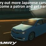 Patrons can get early access to the Civilian Versions of the 2012 Ford Escape and the 2014 Toyota Camry. I’m making variants on these, so general public release is a few weeks away.