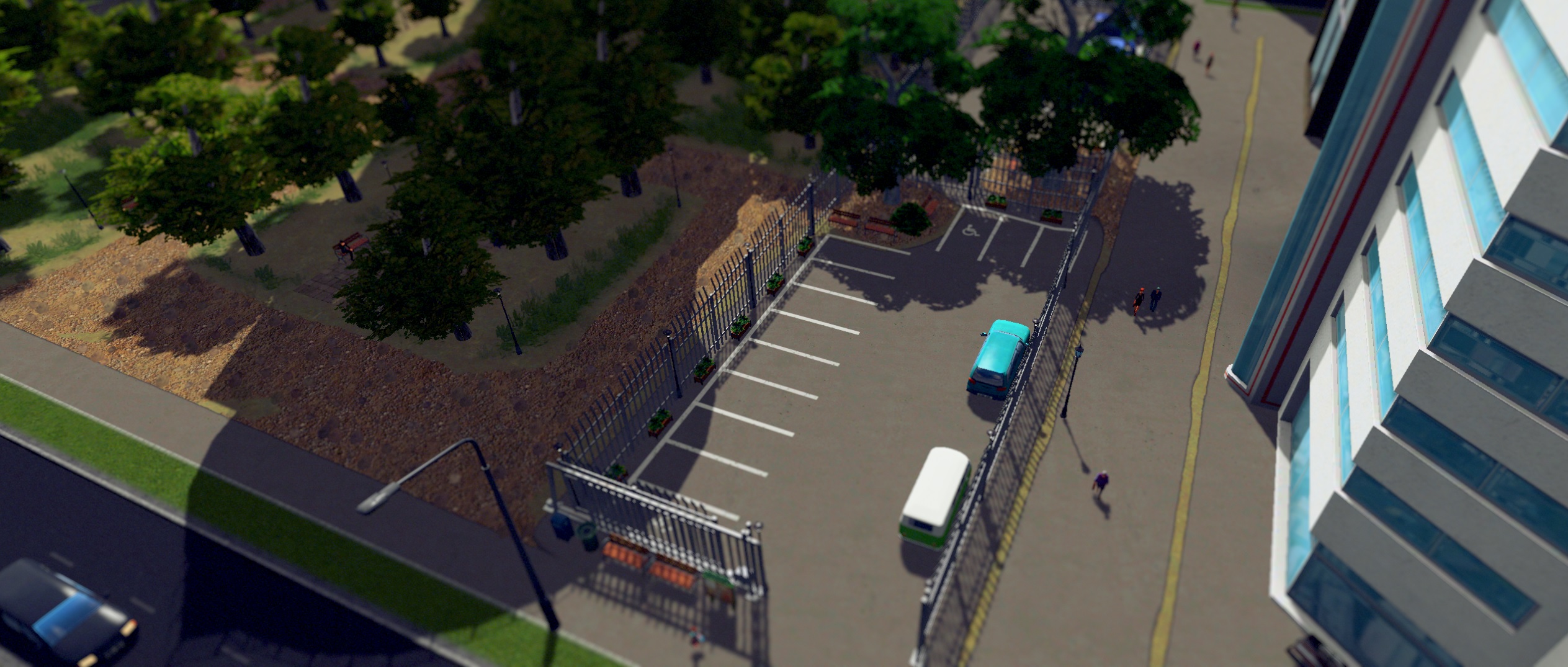 I wanted to create a car park that would fill in some commonly sized gaps in my city. I like to put parking spaces next to parks, hospitals, and unique buildings for more realistic cities.