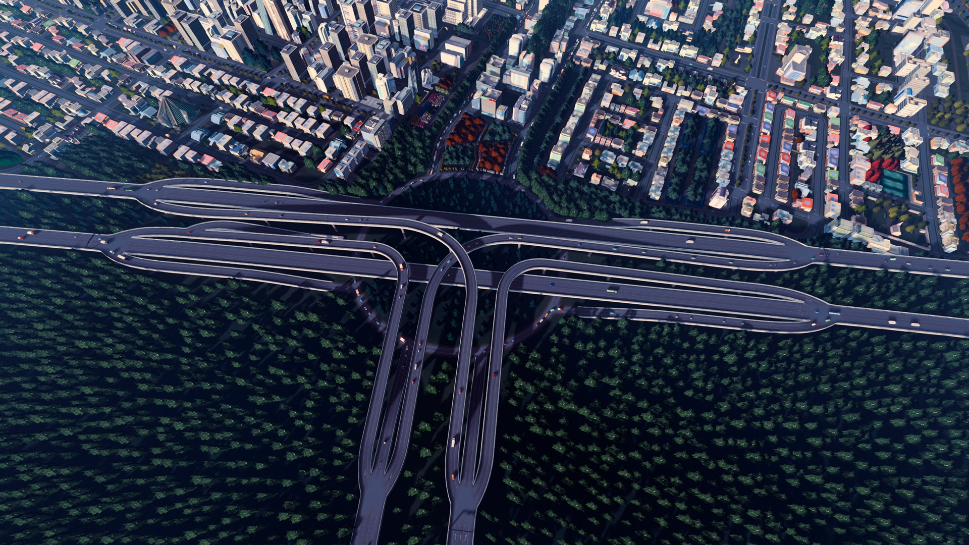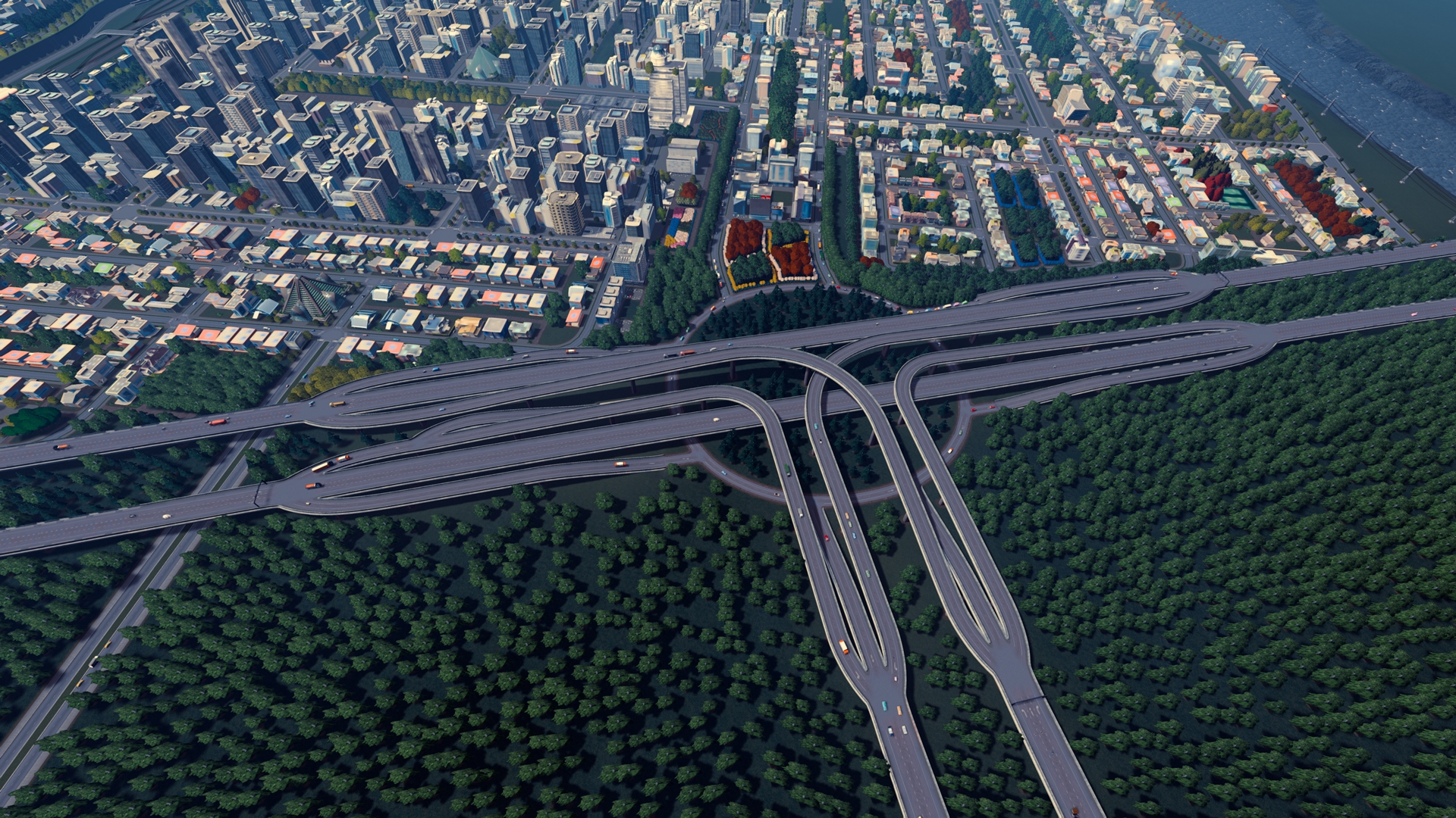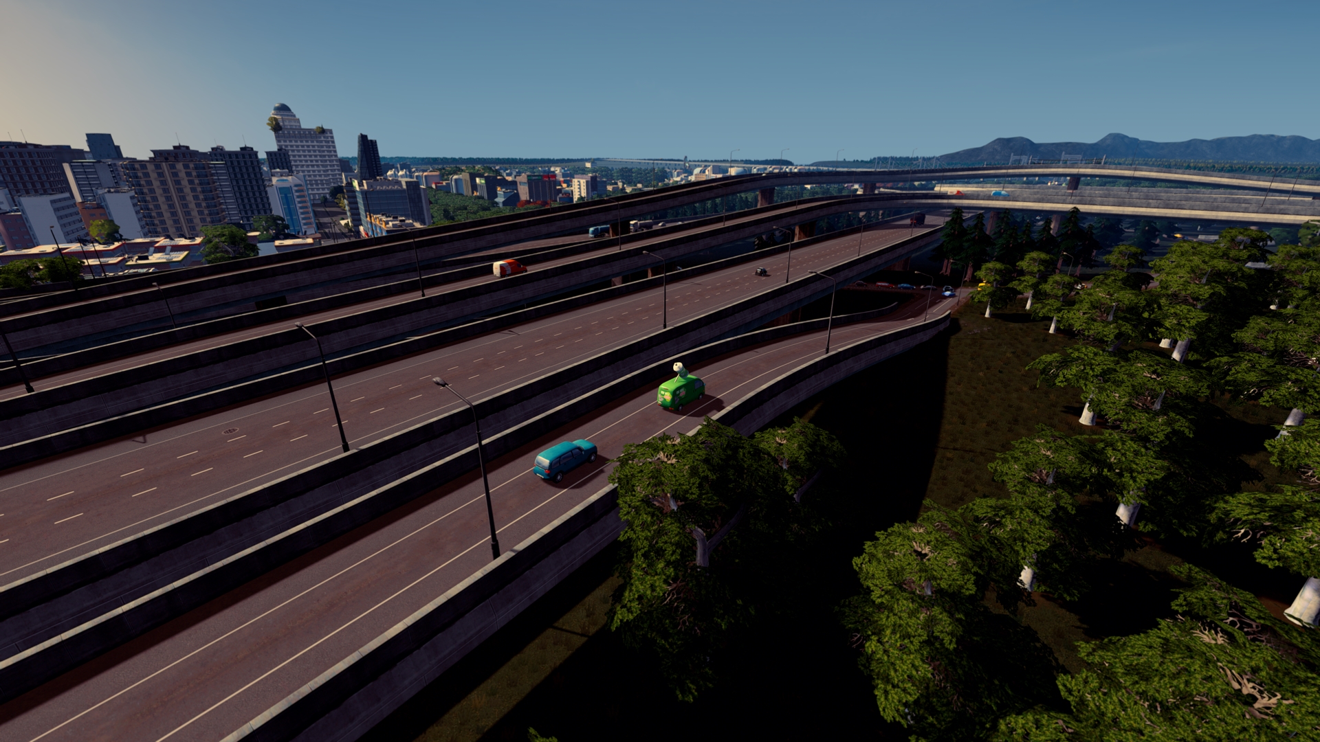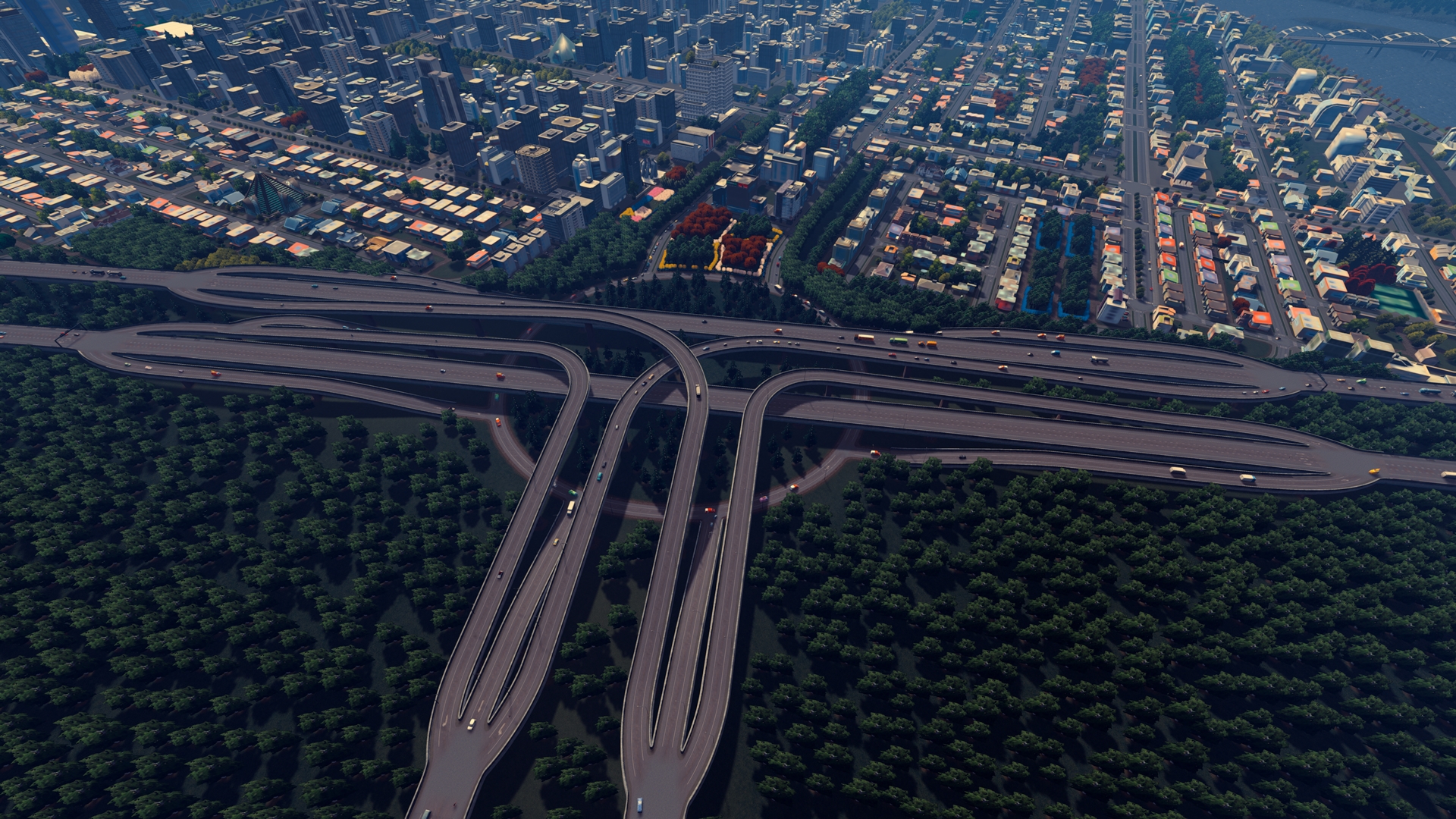 Currently I increased the distance between the two highways to 10/12 cells instead of 4 because this way I have more options to add on/off ramps and make larger and more complex interchanges in-game, and also to not use any kind of traffic mods (?). This is the way I’m playing.