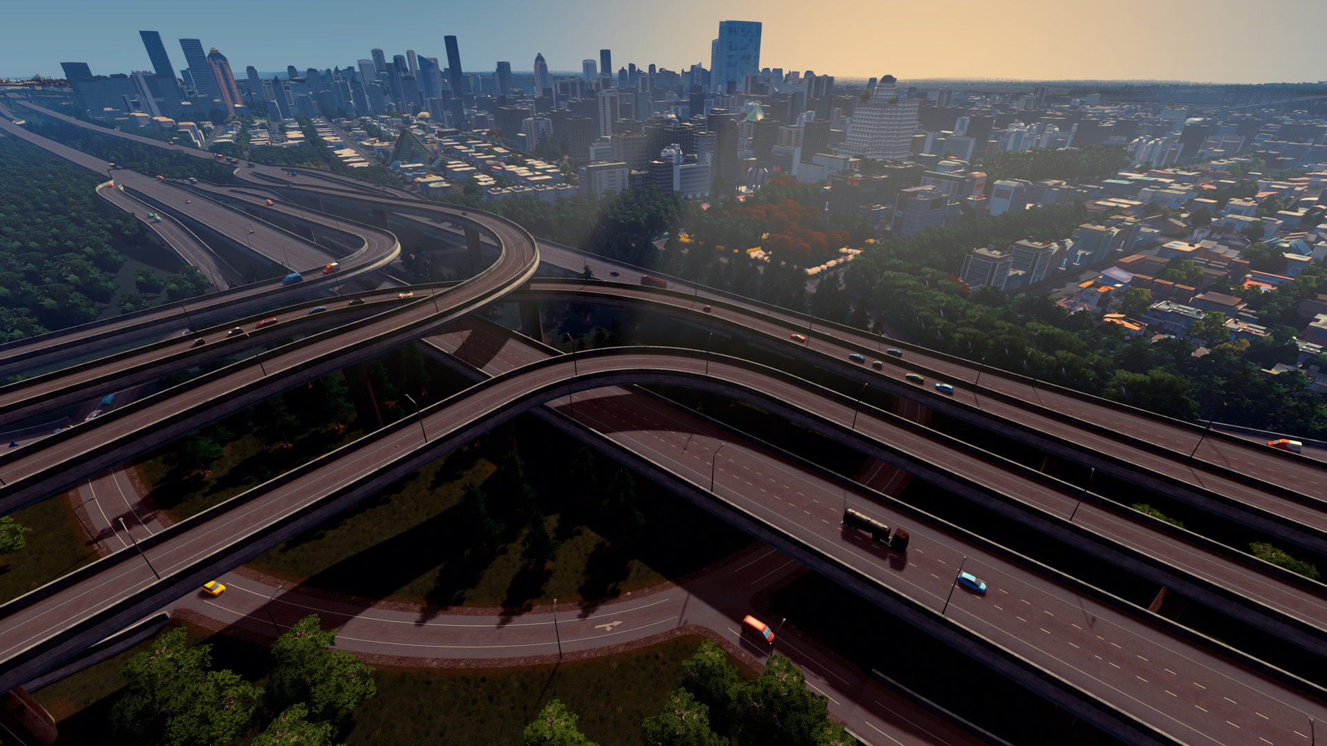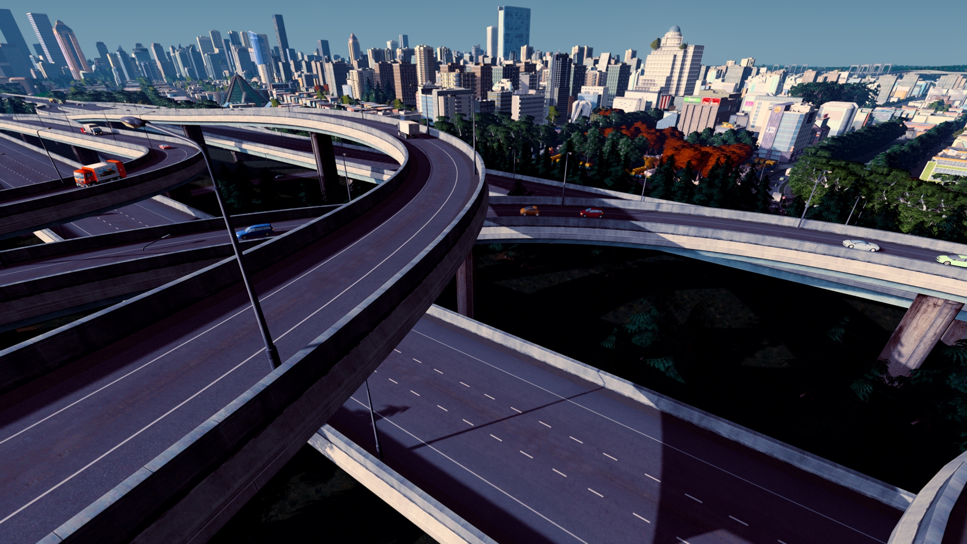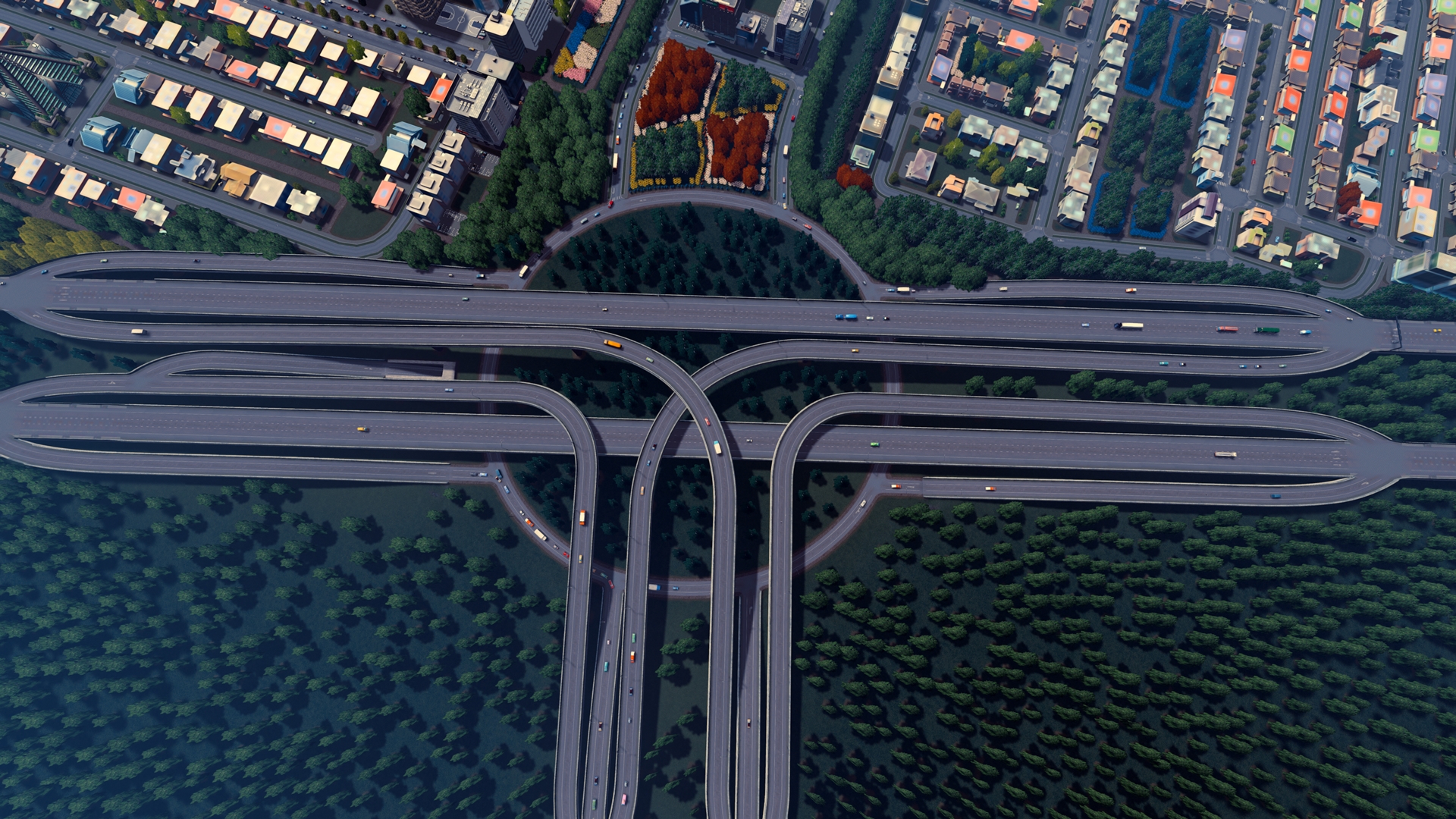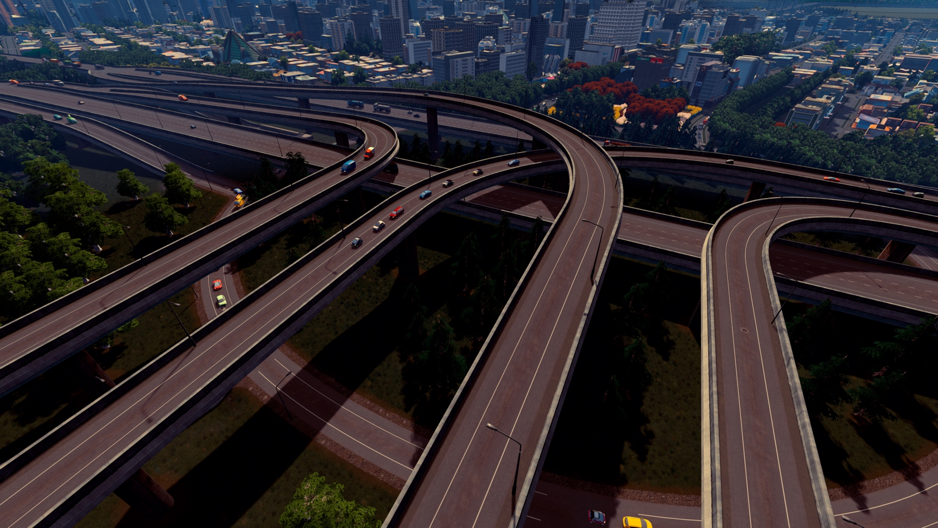Currently I increased the distance between the two highways to 10/12 cells instead of 4 because this way I have more options to add on/off ramps and make larger and more complex interchanges in-game, and also to not use any kind of traffic mods (?). This is the way I’m playing.