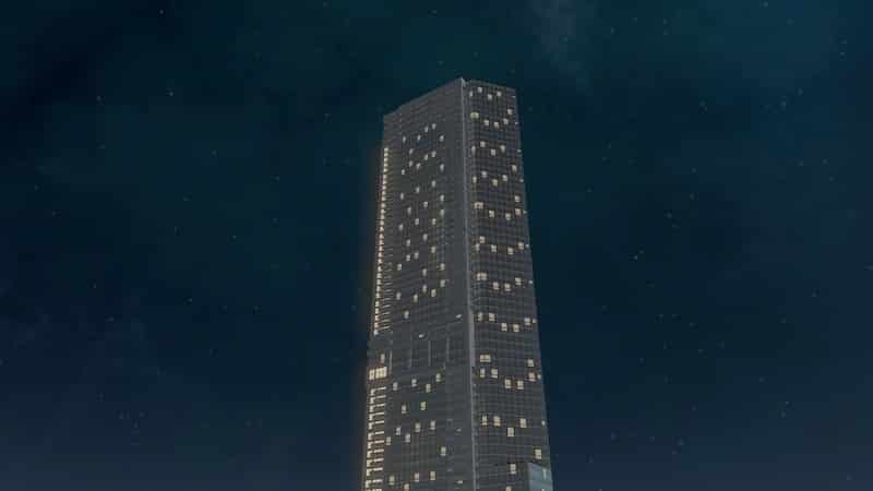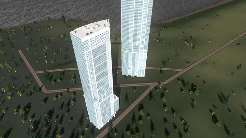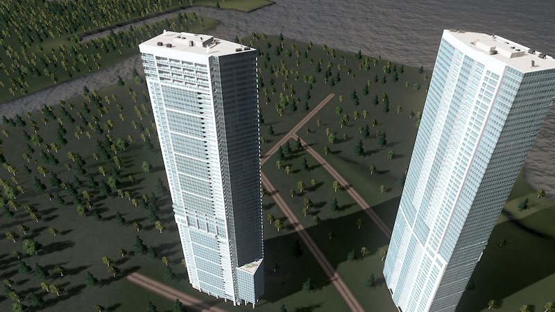 This building is the product of several weeks of work so I hope you like it. I took some liberties with the back, which in real life is covered by a parking garage or whatever. I also did some tinkering to reduce tri-count – this building sports dozens of balconies, which Cities Skylines gets very mad about.