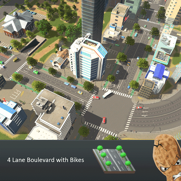 4 Lane Boulevard with Bikes – same layout as 4 Lane Tram Boulevard with Bikes. Just no Tram ?