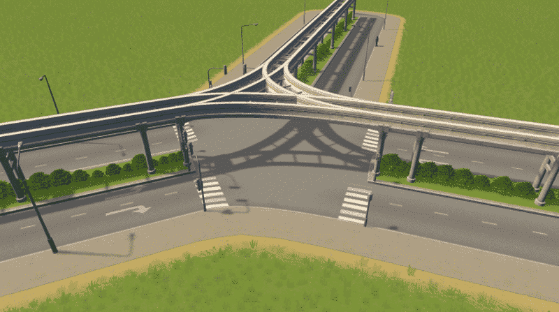 4-Lane Monorail road with plants to cut back on noise pollution.