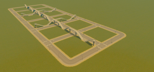 A functioning 4 track railroad crossing with 4 lane road. Some American road signs are used. You can delete them if you wish once the asset is plopped down.