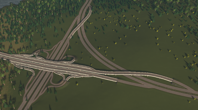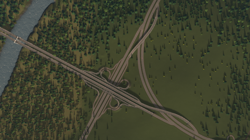 4 way cloverleaf interchange with 90 deg. directional way