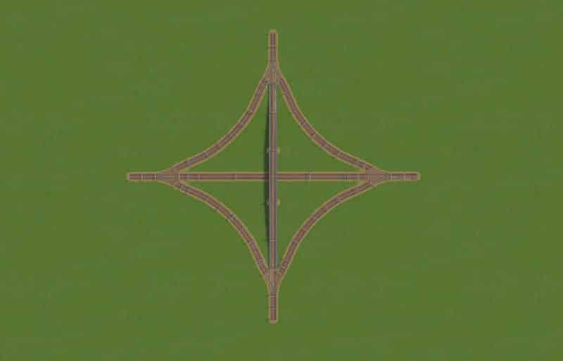 This train-track intersection has been extensively “polished” for maximum smoothness of curves.