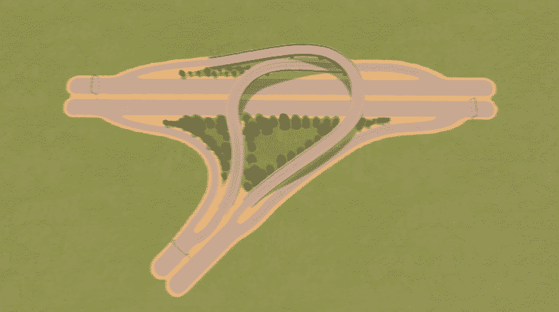 A Compact 45-degree Directional T interchange. Designed to make sharp-angle intersections look good.