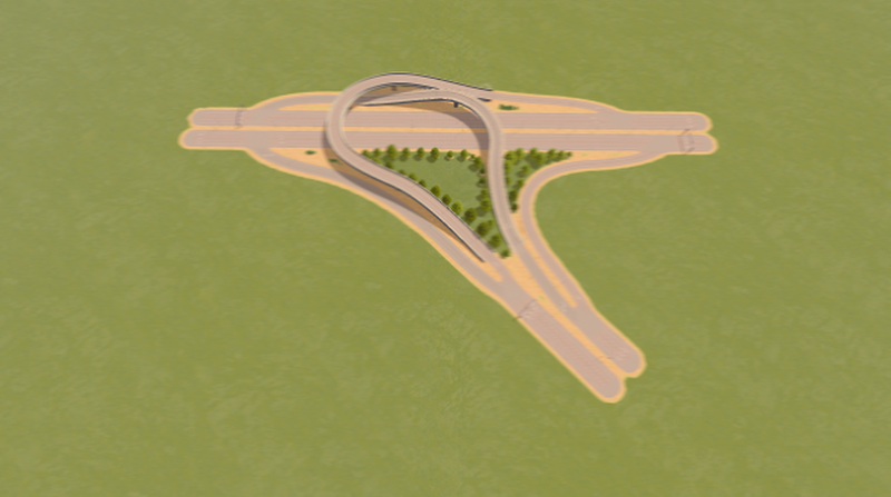 A Compact 45-degree Directional T interchange. Designed to make sharp-angle intersections look good.