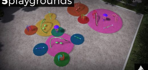 A small park 4×8 tiles big with playground, parking places and a path leading through, citizens can enter/leave on both ends.