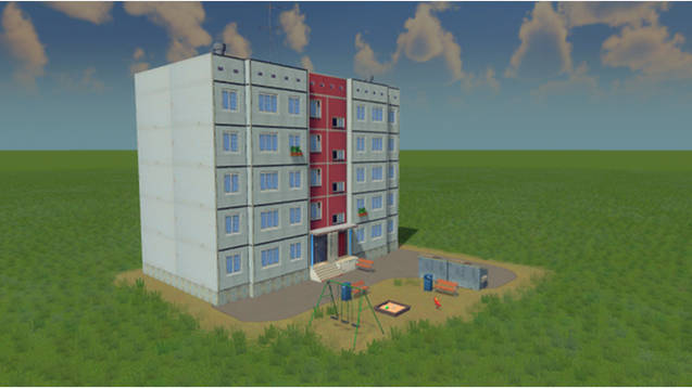 5 Floor Russian Tenement, serial project 111-83. It is one of the most common panelbau buildings in Russian cities. You can see in in such cities as Volgograd, Rostov-na-Donu, Kaluga, Tula, Solicamsk etc. The model is very detailed and neat. In game it is 1 level high density 3×3 building.