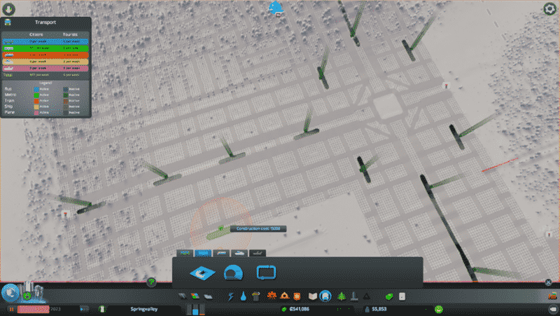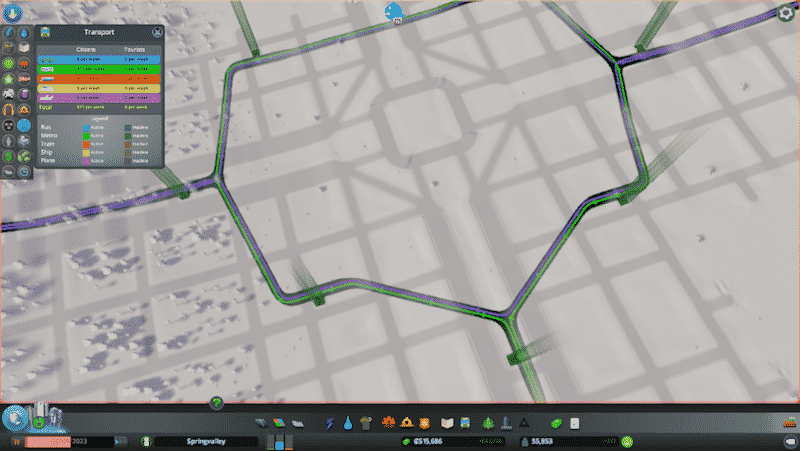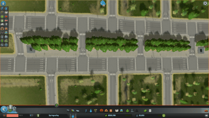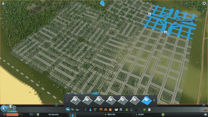 Designed so central axis can be upgraded into two 6-lane one-way roads,