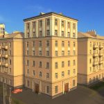 Corner tower brick tenement, based on the real building built in the middle of 1950s on the central squere of Losinoostrovsk/Babuškin city (from 1960s is a part of Moscow as Babuškinski district).