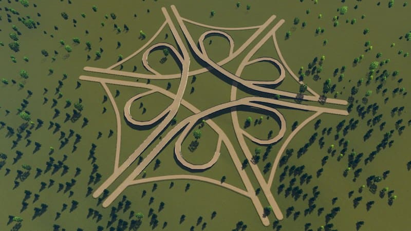 A large 6-way clover-like interchange for highways. It’s recommended to place on flat ground.