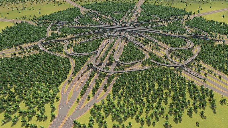 The highest capacity ever done in CS. Place this Interchange to the central of your map and you`re basically done with the highway traffic (maybe add an outer ring at ~250k pop)