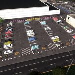 The parking lot has about two dozen vanilla car props (4 different types – listed below), as well as an additional 20 or so functional parking space markers that will be used by Cims in need for a parking spot. That means that when placed in a strategic location, this parking lot should fill up pretty quickly, giving it a look that fits a busy location.