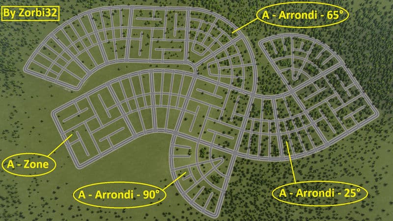Zone de construction arrondi 24° pour relier d’autre parcelle ou pour faire un cercle géant. Il faut quinze segments pour faire un cercle complet