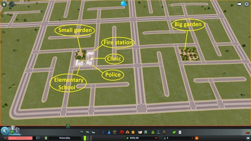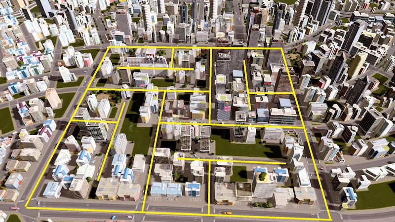 Parcelle de zone constructible a mettre les unes a coté des autres. Avec un carré 10×10 au milieu pour mettre un grand jardin ou plusieurs batiment publique