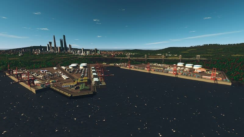 Harbour: A harbour, with eleven docks, some with, some without train connection. Industry is settled along this harbour. Large container yards can also be found. The harbour is connected to the city with rails, highway and a sixlane road.