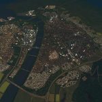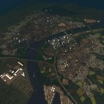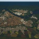 I tried to create a realistic road layout ( ) , with both, a naturally grown city look and a planned layout. In the outer areas of the city, the urban city look blends into a rural area filled with fields, churches and low density housing. In this city you can find: