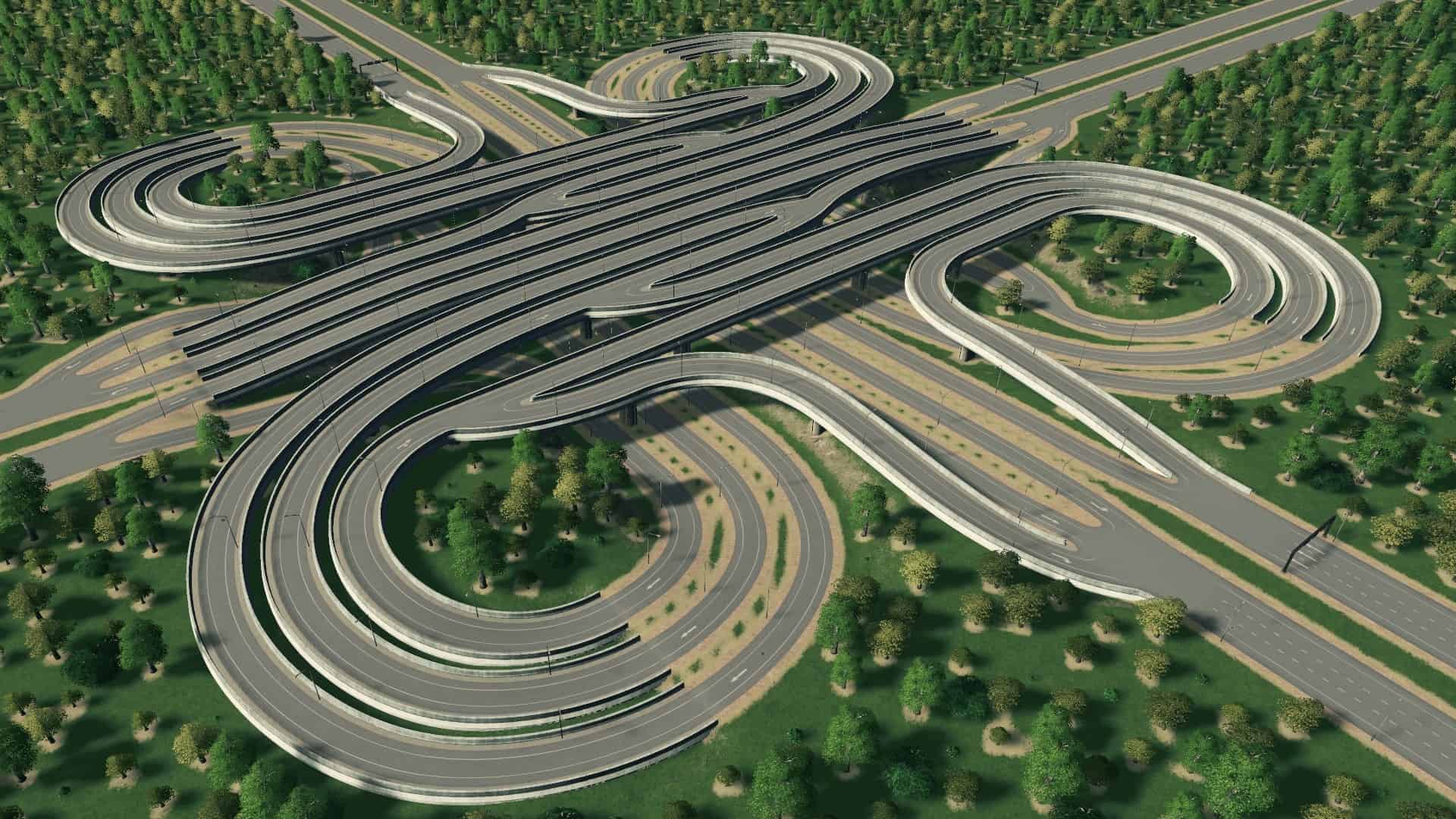 This interchange is a redesigned version of the well known Cloverleaf Interchange. Inspiration came from the Pinavia Interchange. My goal was to use more or less the layout of a cloverleaf, but fix the weaving problems it has. This problem is mostly gone now because with this interchange, only the cars that want/need to make a U-turn will be mixed with other traffic compared to almost all the traffic on a default cloverleaf.