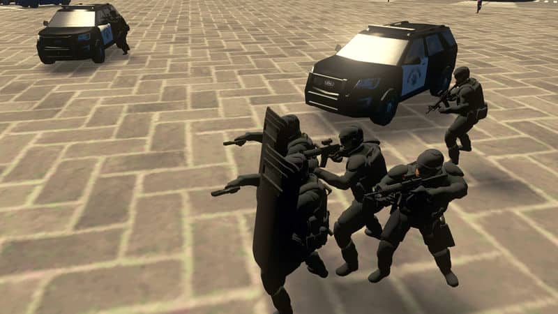 These are props. Each prop has unique weapon and form. Rifle, Shotgun, Submachine gun, Shield and pistol. So you can make various situations. Special Weapons Assault Team, man, male, criminal, military, army, FBI, prop.