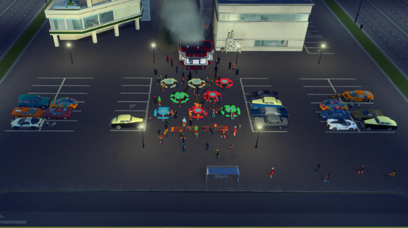Cim markers are set so Cims gather to talk, enjoy a burger, or just sit under the lights and share time making this a very active parking lot and burger grill…. a great place to run your bus line.