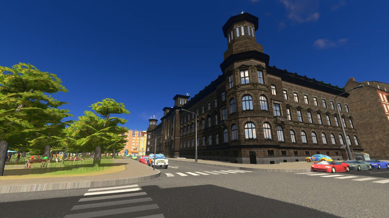 Dies ist ein großes Polizeipräsidium. Es ist inspiriert des Polizeipräsidiums von Dresden (Deutschland). Gebaut im Jahre 1900 aus Sandstein ist es ein repräsentatives Gebäude für eure Polizei und nahezu 3 mal besser als die großen Polizeireviere im Spiel.
