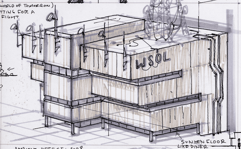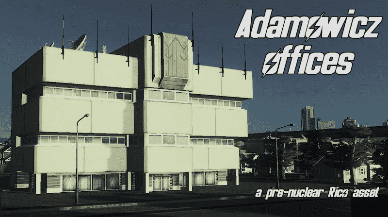 An armoured office building inspired by the concepts made by Adam Adamowicz for Fallout 3. The man defined a very distinctive visual personality for that game and produced many fascinating designs[www.flickr.com] for both pre and post nuclear war America.