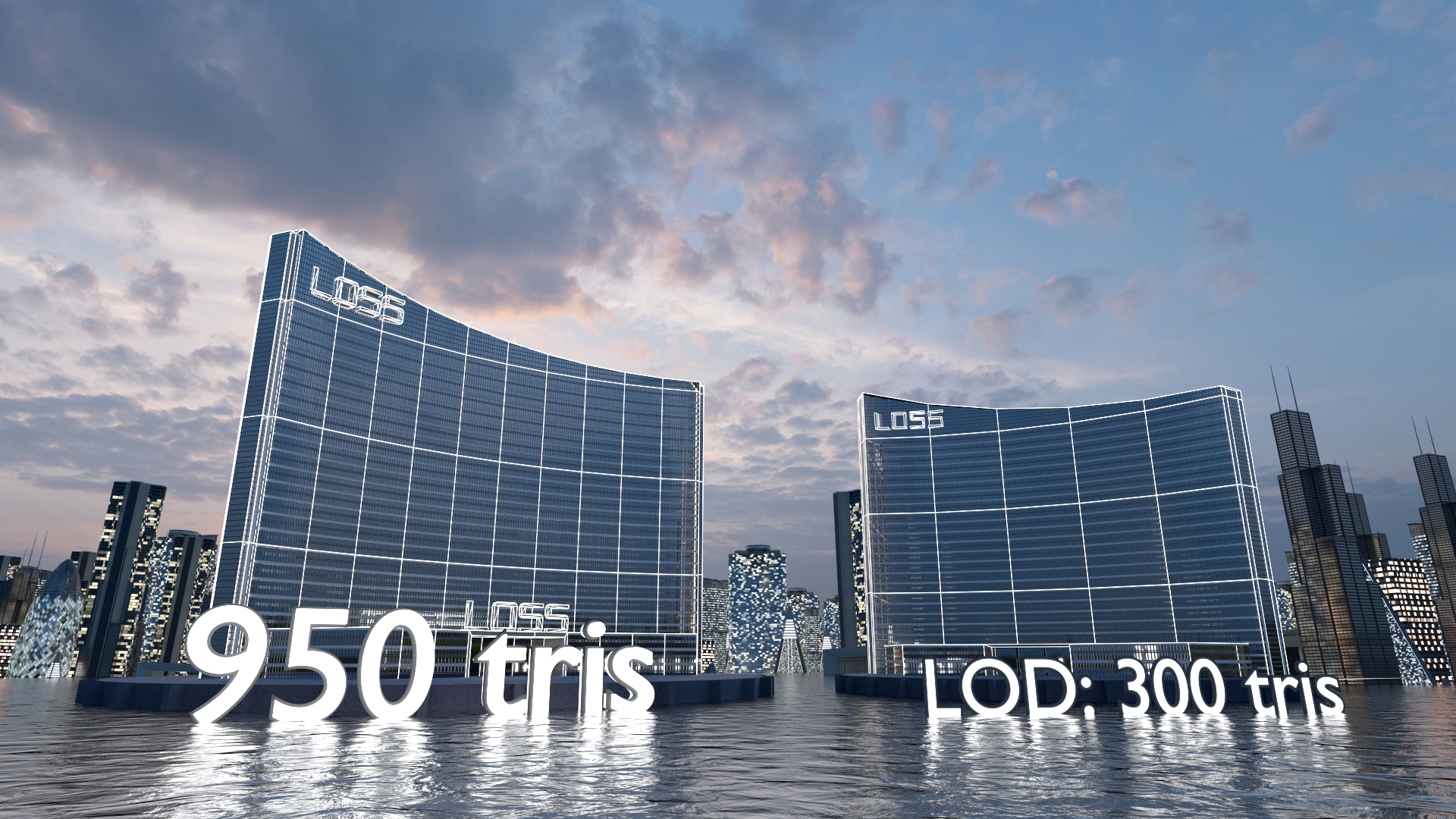 -950 tris, 2048 texture resolution, Custom LOD(300 tris, 256 texture resolution).