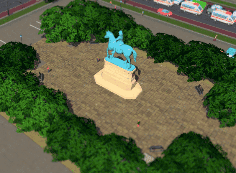Employees will enter and exit the building and gather at the benches while sims visit the park, taking advantage of the free parking.