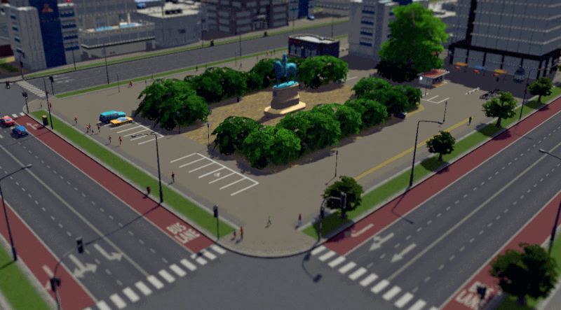 Employees will enter and exit the building and gather at the benches while sims visit the park, taking advantage of the free parking.