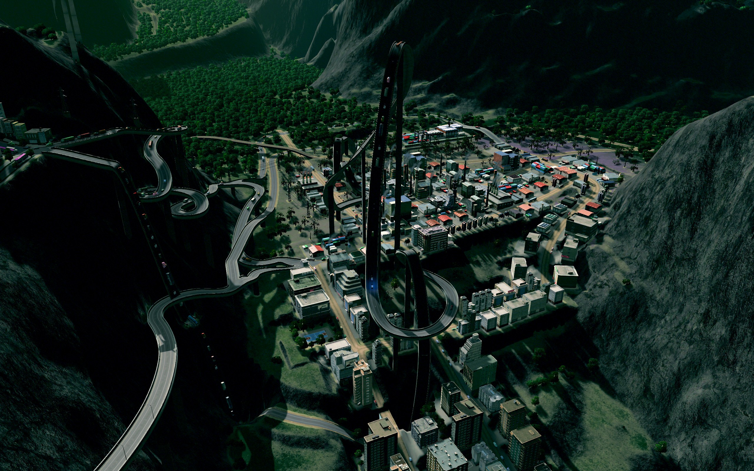 NO RULES. Removed most of the rules governing the placement of roads and tracks. No limit to slope, much higher height limit, barely any collision checking. Also allows you to build roads over zoned buildings without removing them (so long as the pillars don’t touch them).