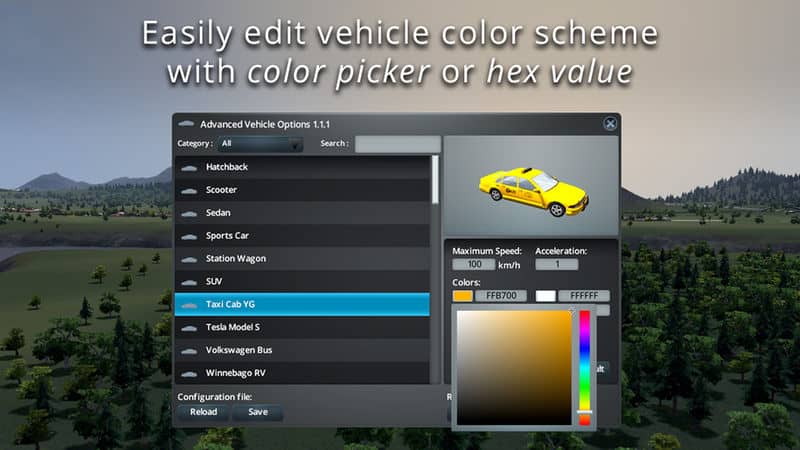 Max Speed: Lets you change the maximum speed of the vehicle. Please note that due how the game simulate the traffic, vehicles may not reach their maximum speed (ie. road speed limits).