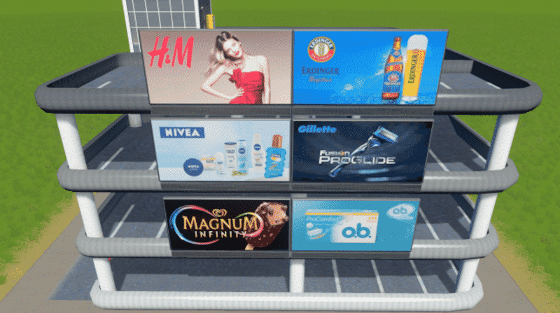 In the pictures the billboard is presented on Kliekies parking garage, which has a footprint of 4×4, so you can estimate its size. The billboard is still a little bit bigger than some of the vanilla-games medium billboards, but it’s only 40% the size of my (GCVos’) big ones, so i chose the small-tab.