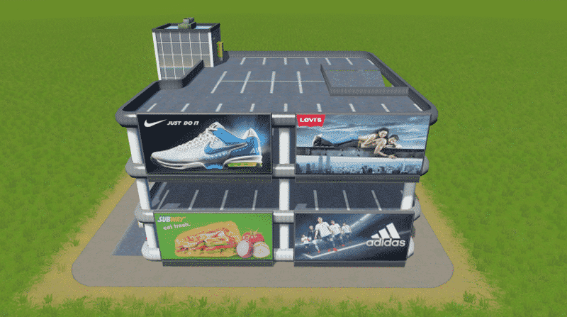 In the pictures the billboard is presented on Kliekies parking garage, which has a footprint of 4×4, so you can estimate its size. The billboard is still a little bit bigger than some of the vanilla-games big billboards, but it’s only 60% the size of my (GCVos’) big ones, so i chose the medium-tab.
