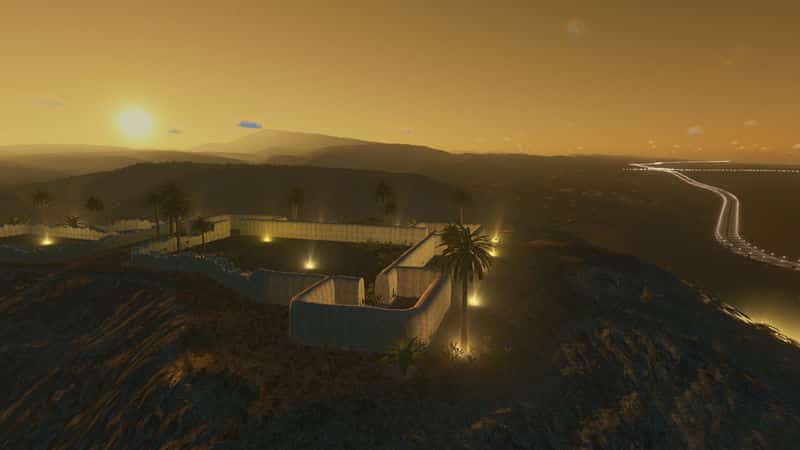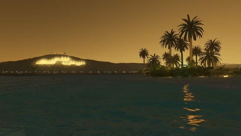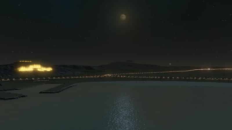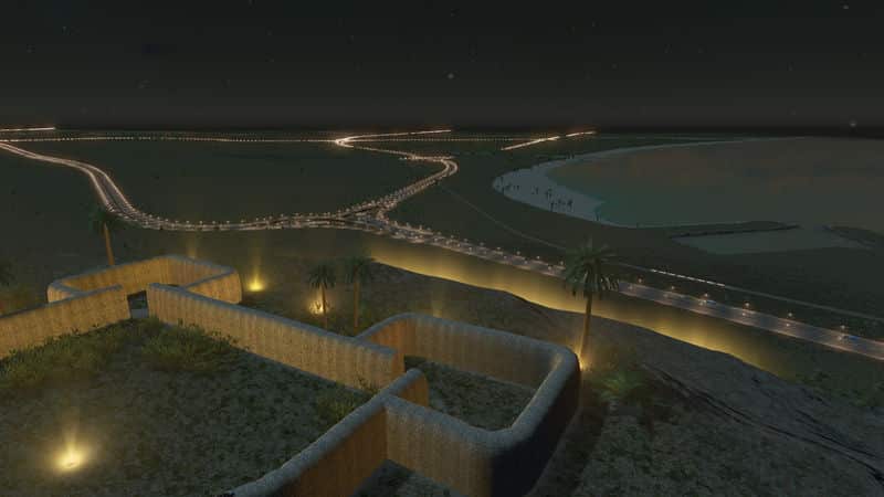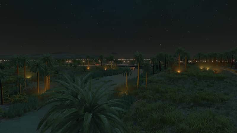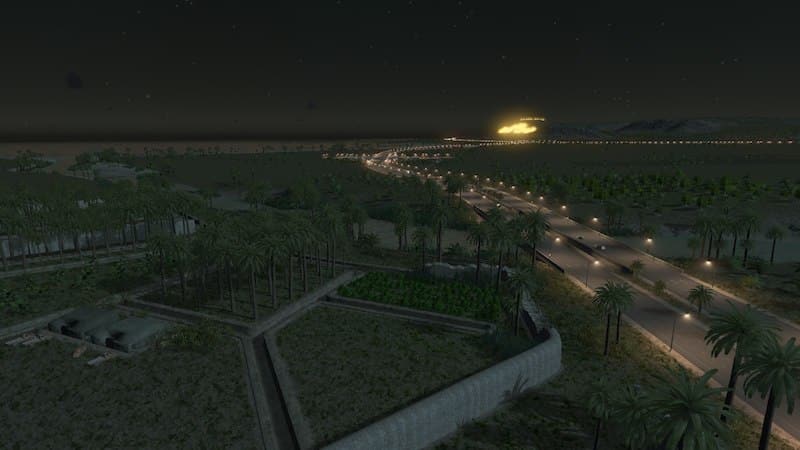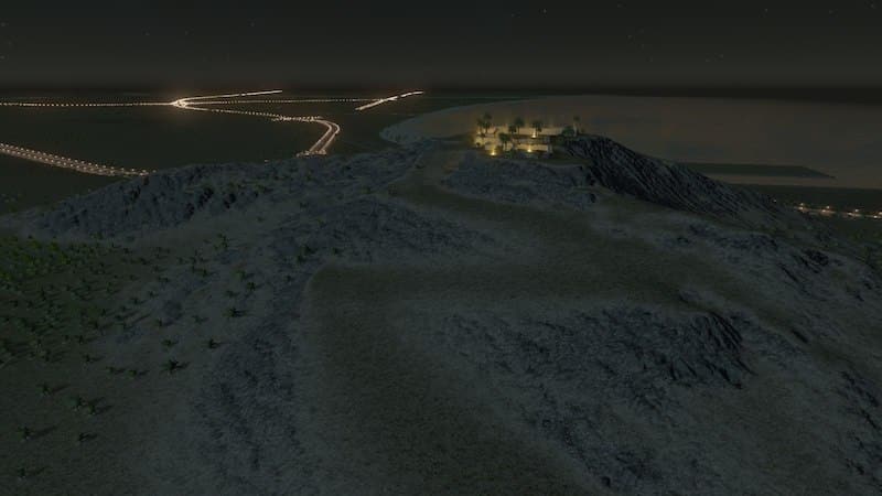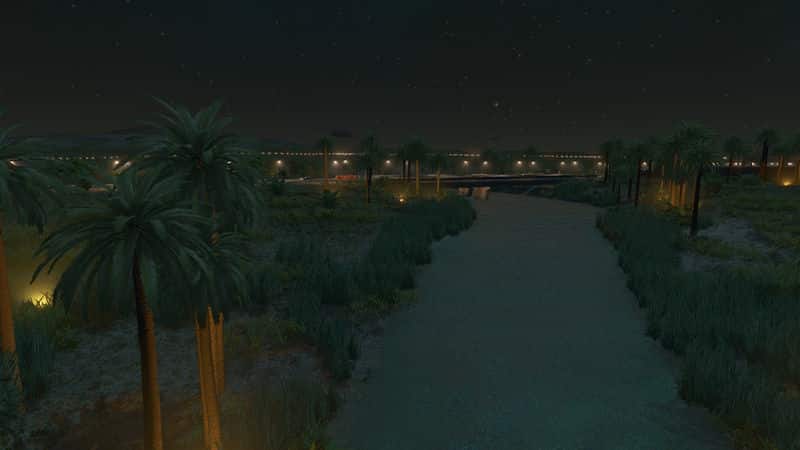 I cannot light up the casbah and Inscription inside the map maker for you. I can share the save game with the lights placed and working (the very same you see in the pictures) if someone wants it. To make the illumination on your own, place lights along the inscription with the Network Skins mod with the Modern Lighting Pack. Prop and Tree Anarchy will help make placement a lot easier, and you’ll also need More Beautification to place them.
