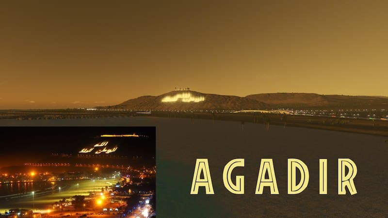 * Vegetation in your city: Agadir is located right on the beginning of the High Atlas Mountains, a valuable source of fresh water. Also you will see to the south of your map is the Sous River. Your city will spawn buildings with green leafy trees – this will be perfectly fine and is seen in the real Agadir. See video for inspiration.