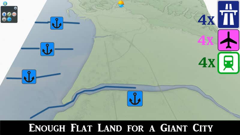 * Water Supply – You will most likely want to use water towers for the beginning, until you reach the Sous River to the south. Be very cautious about the currents around the harbor when placing water utilities. Water management is more difficult for this map compared to my other maps, on purpose.