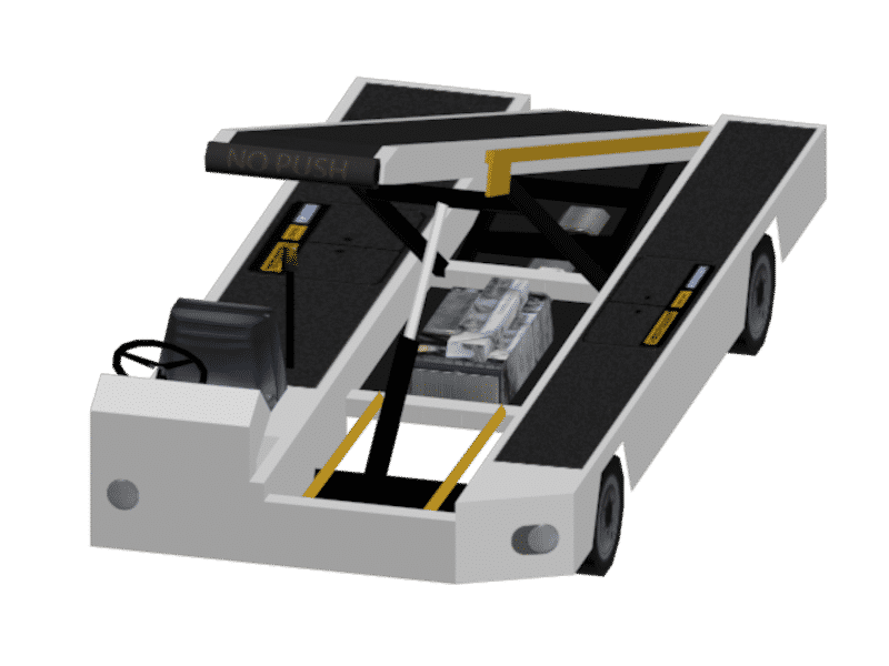 A belt loader for an airport. These are used to load baggage into the cargo hold of passenger aircraft. This model is in the extended position and is the correct height for the 737 and A320 airplane assets. This model contains 750 Tris with a 512×512 texture and has a 150 Tri LOD with a 64×64 texture.