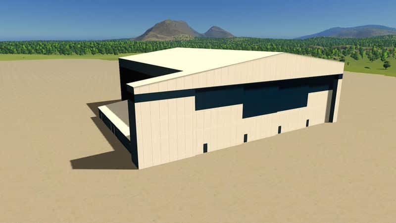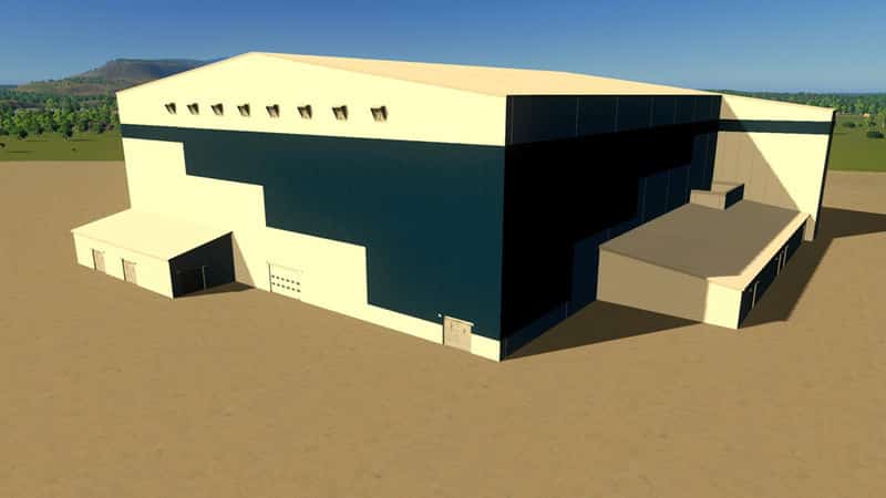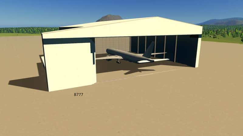 This is an airport hangar building for large wide-body commercial aircraft. It is suitable to house all current commercial aircraft, including the B777, A350, B747, and A380.